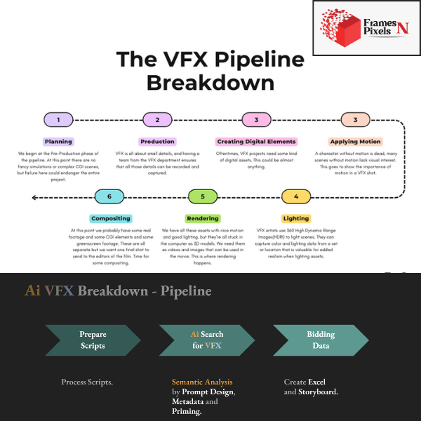 The VFX Pipeline: A Breakdown of process Pre-Production: Concept Development: The initial stage involves brainstorming and developing the visual concepts for the film or project. This includes discussions about the desired effects, their purpose, and how they will integrate with the story. Storyboarding: Storyboards are created to visualize the sequences that require VFX. This helps in understanding the timing, movement, and overall flow of the effects. Reference Gathering: Read More:https://www.arenavirar.com/the-vfx-pipeline-a-breakdown-of-process/